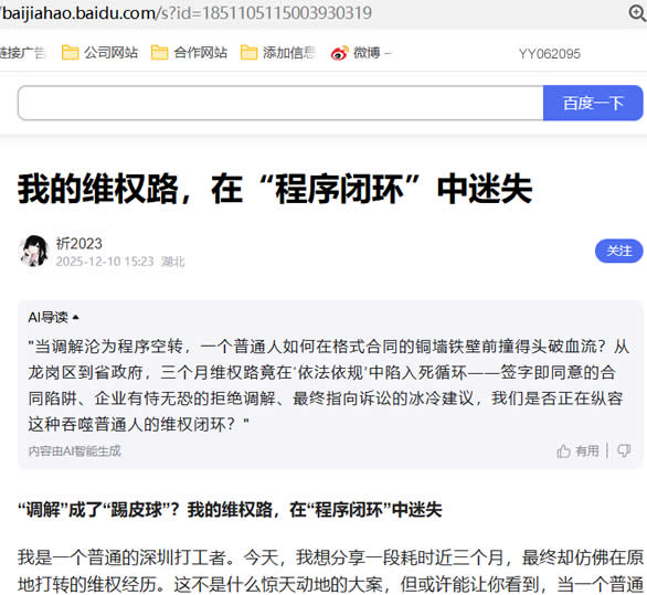我是一个普通的深圳打工者。今天,我想分享一段耗时近三个月,最终却仿佛在原地打转的维权经历。这不是什么惊天动地的大案,但或许能让你看到,当一个普通人试图撼动一份“格式合同”时,所面临的真实困境。事情要从今年下半年说起。